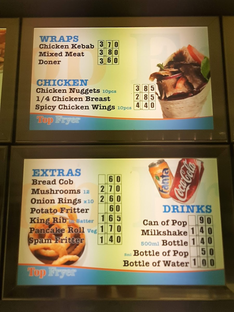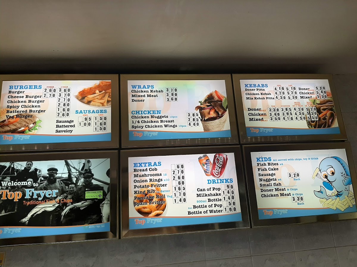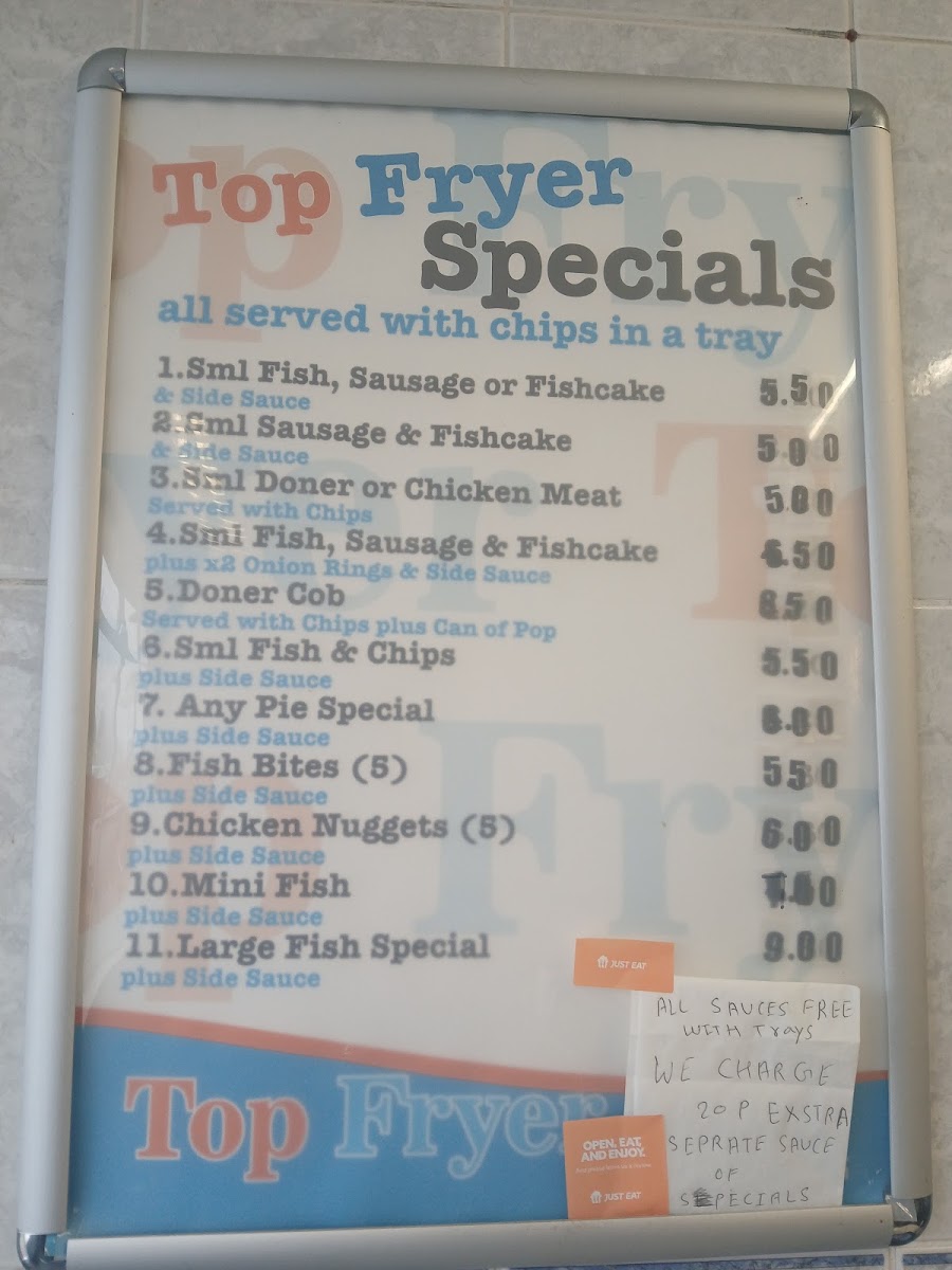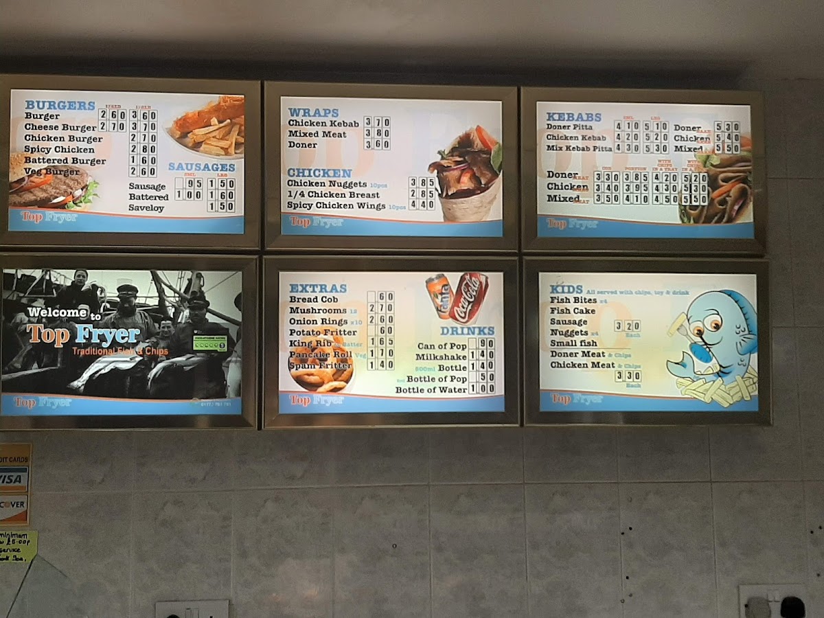 Oval Fish Bar in Sutton-in-Ashfield offers a variety of classic and comforting dishes that cater to all tastes. Their Kids menu features simple and tasty options like Fish Bites, Fish Cake, and Small Fish, perfect for younger diners. For those craving something heartier, the Kebabs section includes options such as the Doner Pitta, Chicken Kebab, and the Mix Kebab Pitta. The Wraps menu is another highlight, with Chicken Kebab, Mixed Meat, and Doner wraps for a quick and satisfying meal. If you're in the mood for chicken, choices like Chicken Nuggets, 1/4 Chicken Breast, and Spicy Chicken Wings are sure to please. The Extras menu offers side options like Bread Cob, Mushrooms, Onion Rings, and King Rib, adding a nice touch to any meal. Those with a love for burgers will enjoy selections such as the Burger, Cheese Burger, Chicken Burger, and Spicy Chicken, alongside the Battered Burger for a crispy twist. No meal is complete without Chips, and the restaurant serves them with options like Chips 'N' Cheese or any Mix of your choice. The Top Fryer Specials are also a great option, offering combos like Sml Fish, Sausage Or Fishcake and the 6ml Sausage & Fishcake. For seafood lovers, the Fish menu offers popular choices like Haddock, Plaice, Mini Fish, and Scampi, while the Fish Cake adds a flavorful twist. Complement your meal with a refreshing Can of Pop, Milkshake, or Bottle of Water. For extra flavor, don't forget the Pot Garlic Mayo. With such a wide range of options, Oval Fish Bar ensures a satisfying meal for everyone.